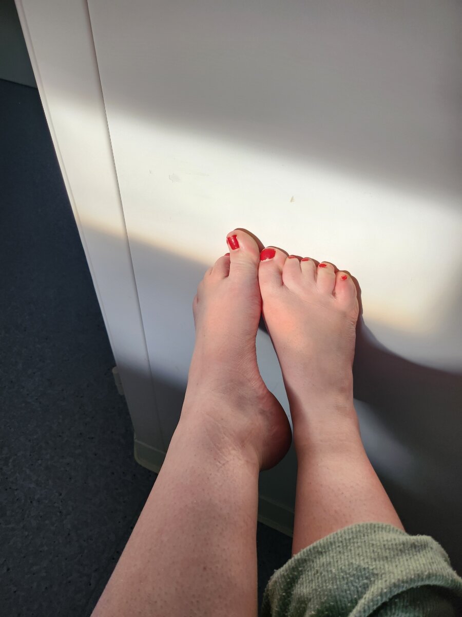 A ray of sunshine, two feets just rubbing against one another. Wanna see more ? #feet #dirtyfeet #rubbing #woman #young #frenchgirl #nudefeet #nailpolish #red