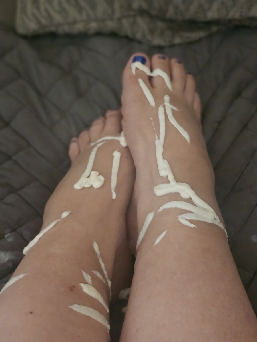 ππ Sweet photos just for you π What other creamy things can I rub on my toes? #creamy #cumhere #yummy #tastytoes #softfeet