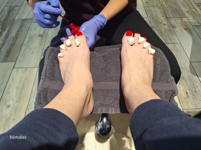 Painted toe nails, feet, legs, heels, jewelry, barefoot, stockings
