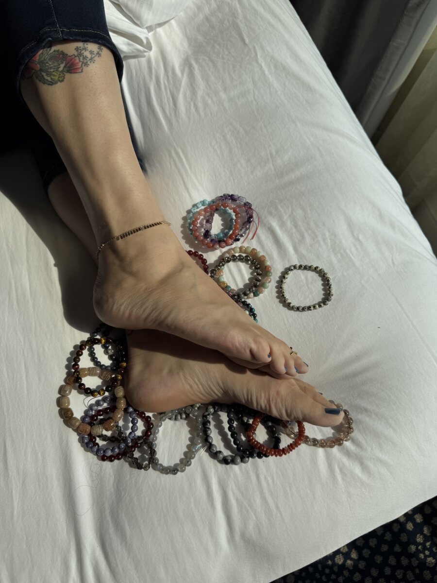 Sneak peek of new content to come. Who would worship my feet and long toes? #bed #longtoes #tattoo #jewelry