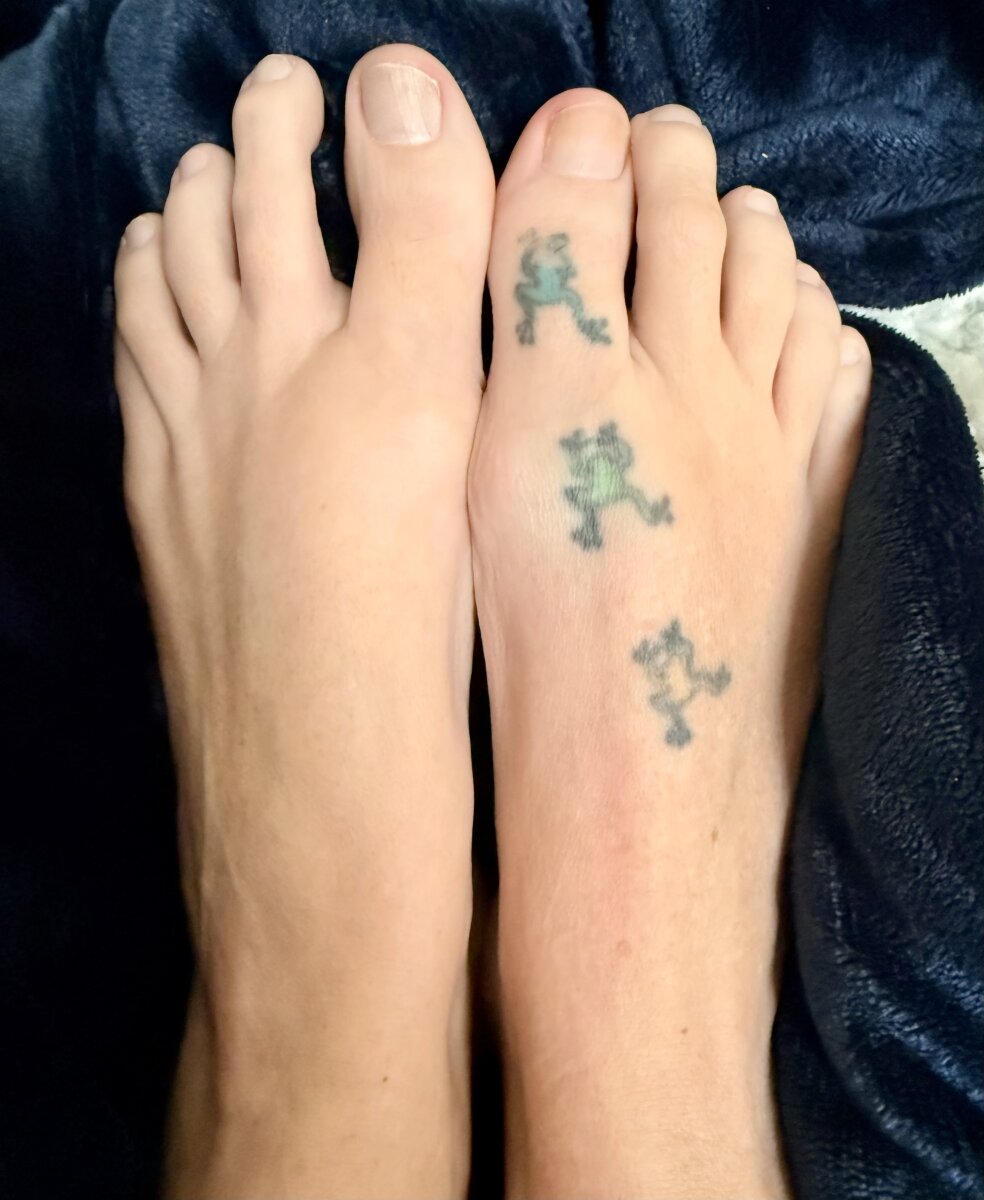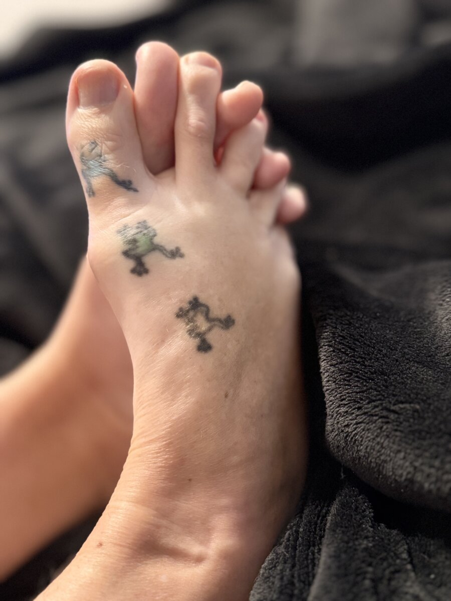 Interlocking toes! #crazylongtoes #tattoos #smoothfeet #softfeet #skinnytoes