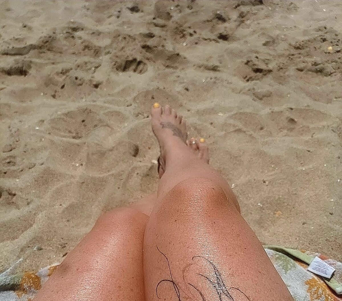 Freshly painted, sandy toes.