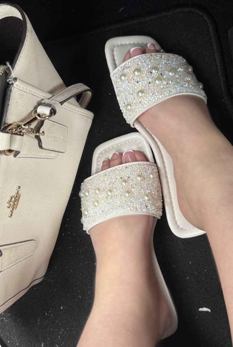 Serving sparkle and pearls ✨👣💅 Luxury at my feet, confidence in every step.