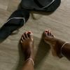 White toes and scrunched meaty soles. Delicious chocolate feet draped over my recliner. Up close so you can see the creases of my feet.