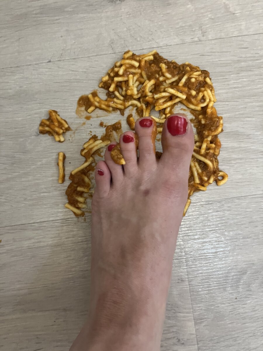 Pasta smash. Msg me for the video! Dirty soles. Oozing between toes.