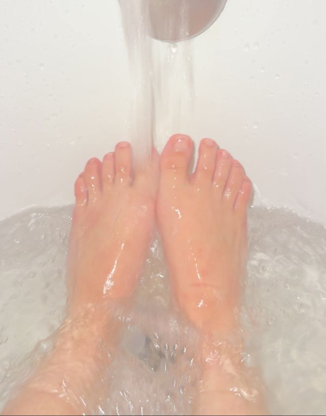 After a long day at work - ASMR: bath tub foot massage - wet, shrinking feet & toe spreading with fingers
