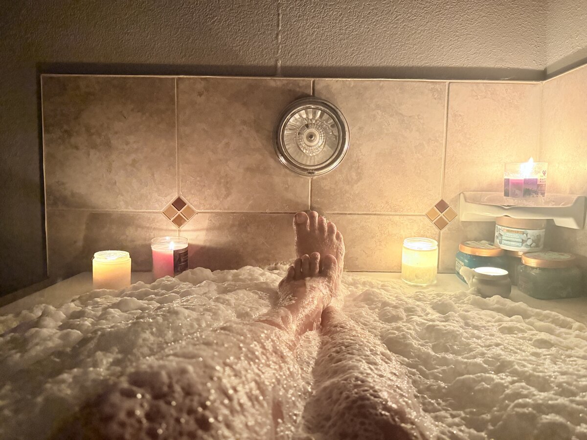 It was bath time. I took a walk in the woods and found some gooey mud to play in. My feet were dir.ty.... sorry no pictures of that. 😈🥰 But you can enjoy pictures of my bathtime; which I decided would be my first... to be recorded for you; and thus more play time. 😏😏😏