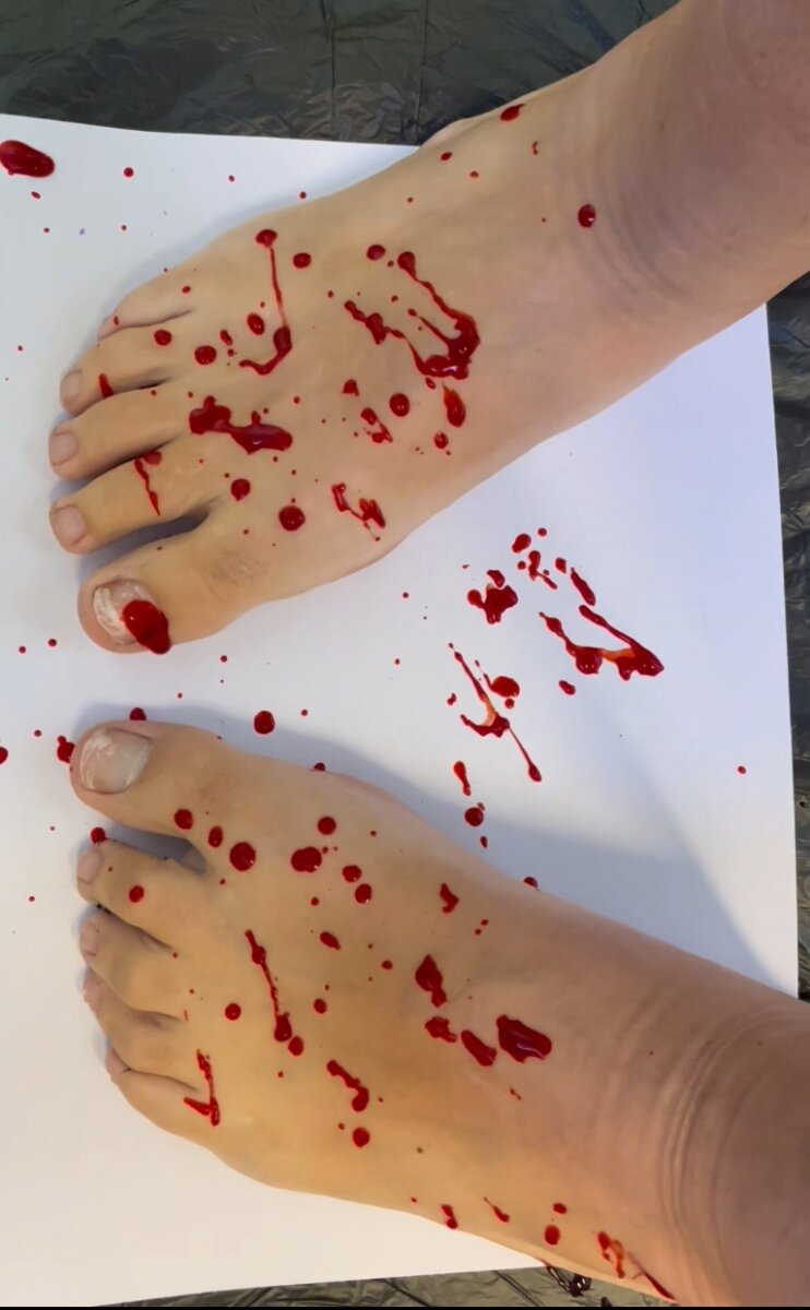 Fake blood spray, cover them toes in fake blood.