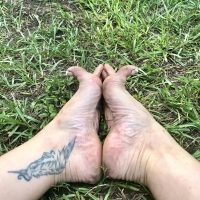 Meet my feet I usually keep my toenails a lot longer just in case I have to scratch myself out of a situation... they're hard as bone, my nails. Dangerous