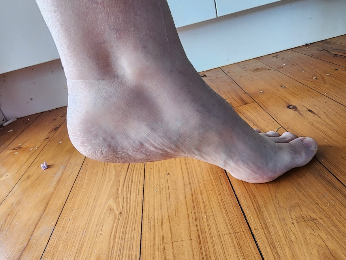 Foot in a thong.