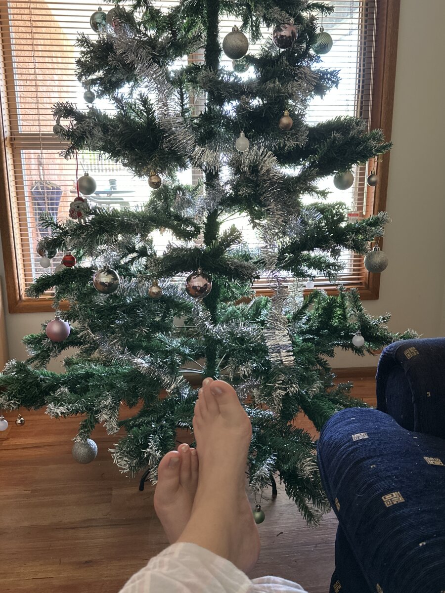 My feet relaxing next to the Christmas tree pretending to be Santa..🧑🎄